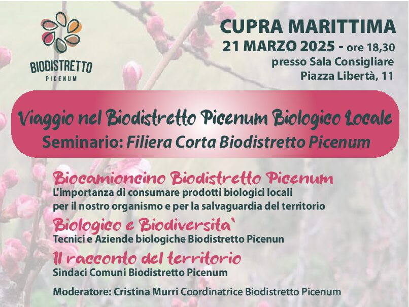 Il 21 marzo 2025, presso la Sala Consiliare di Cupra Marittima, si è svolto con grande interesse l’incontro promosso dal Comune di Cupra Marittima, fiero membro del Biodistretto Picenum.